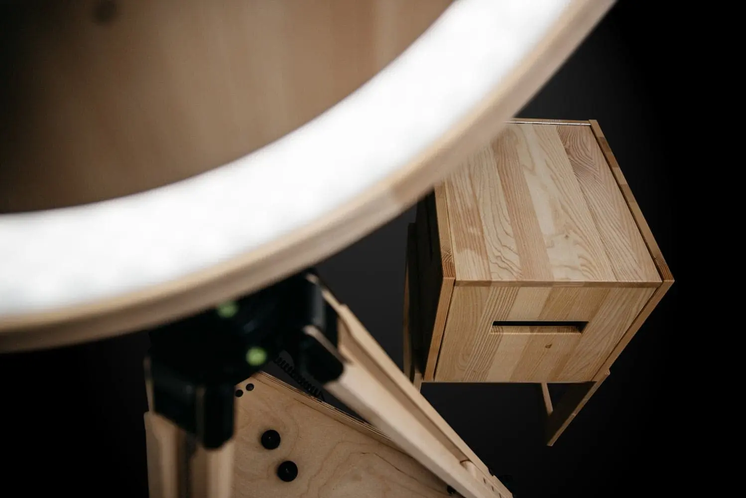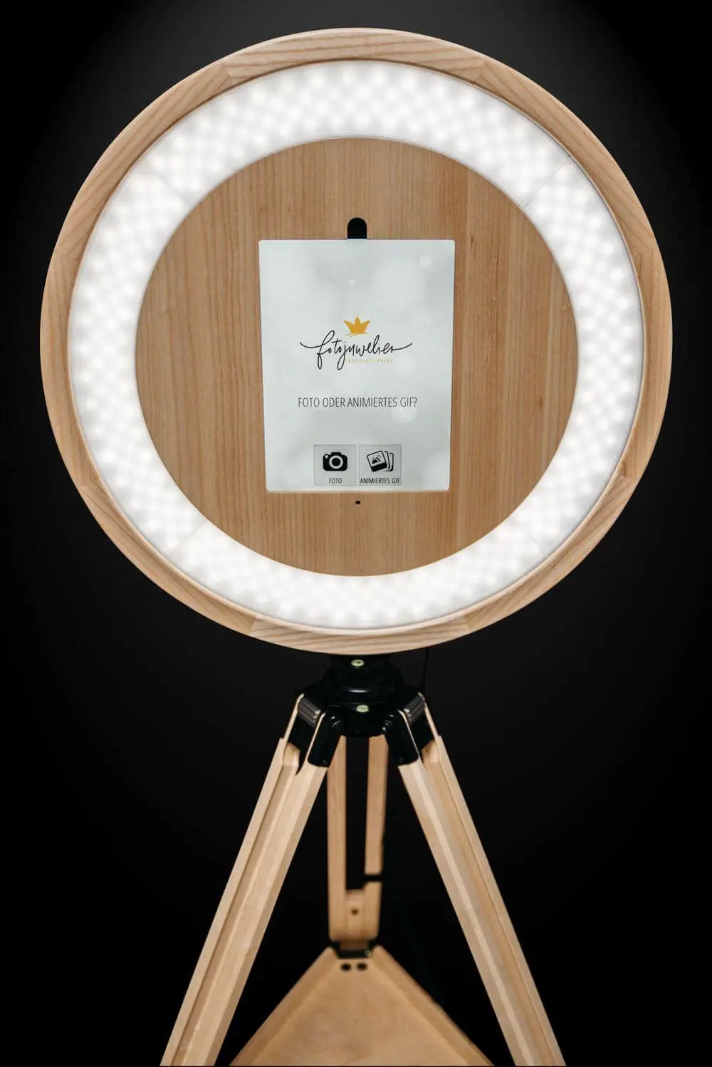 Unsere Fotobox ist ein absoluter Hingucker und passt wirklich in jede Location. Sie müssen sie also nicht in einem extra Raum verstecken sondern am besten gut sichtbar platzieren. Die Fotobox soll ja schließlich gesehen und genutzt werden. Wir lassen die Fotobox übrigens oft sogar in den Raum „gucken“. Das Ringlicht zieht die Gäste magisch an!
